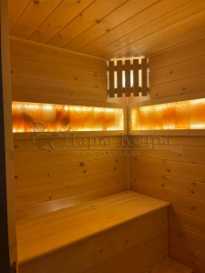 Это специально оборудованная деревянная кабина для сухого и влажного парения. Электропечь нагревает пространство внутри и позволяет сбрызгивать камни водой, слегка увлажняя воздух. Такая процедура позволяет избежать перегрева. Сауна обшита снаружи и внутри вагонкой из липы и имеет теплоизоляционный слой. Установка сауны в угол позволяет рационально использовать пространство помещения. Финская сауна с электропечью подойдет как для домашнего использования, так и для коммерции. Доставляется в разборном виде щитами, собирается по инструкции с помощью шуруповёрта.