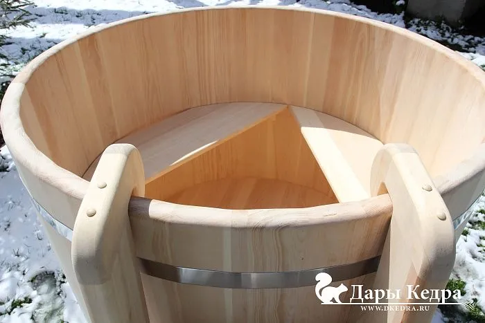Конструируя модели, мы продумываем всё до мелочей. Для безопасного погружения и комфорта внутри есть сиденье, лестницы предусмотрены, как снаружи, так и внутри. Купель поставляется в разобранном или готовом виде. Разборные части легко соединяются. При разбухании или усыхании дерева натяжение обручей регулируется с помощью натяжных болтов. К изделию прилагается подробная инструкция по уходу за древесиной.